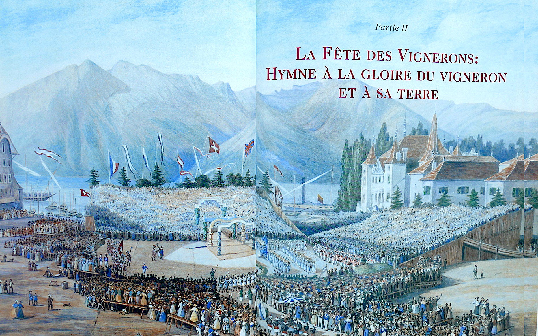 This festival is celebrated once a generation, - each 25 years - in Vevey, on the north-eastern shore of Lac Léman - Lake Geneva. The above picture shows the 1855 festival. Around four thousand musicians, dancers, performers, technicians, stewards, ... are involved in the success of the festivities.